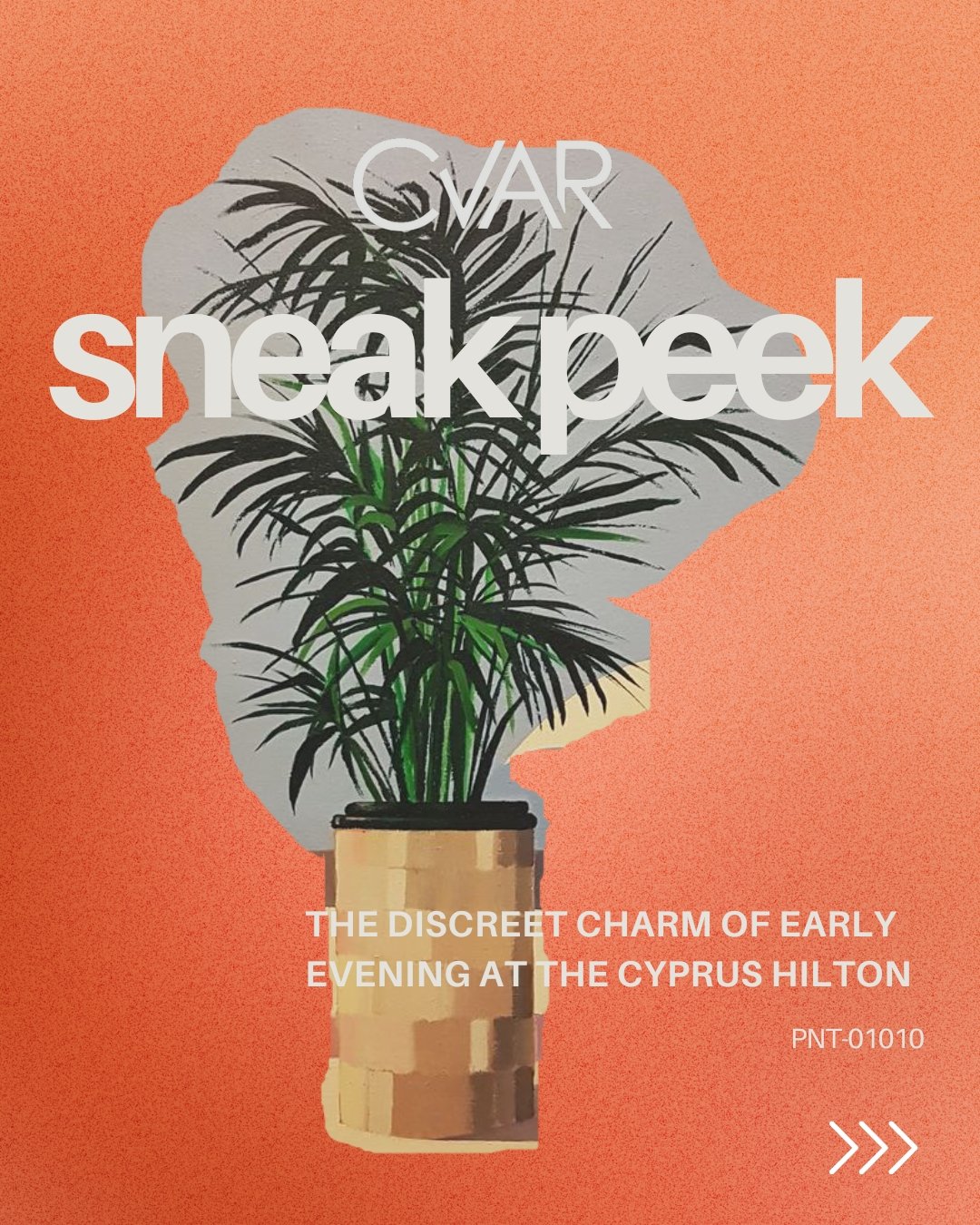 PNT-01010 > Andrew Hewkin, The discreet charm of early evening at the Cyprus Hilton, Oil on Canvas, 100x80 cm, ca. 1970